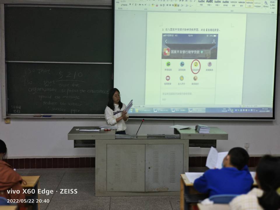 时间:2022-05-23 编辑:学生科 点击:为帮助生源地贷款毕业生了解、掌握还款流程和相关注意事项,树立诚信还款意识,增强法律和契约意识。我院于5月22日晚上7点在外国语学院6401开展了2022届生源地贷款学生集中培训。本次培训由学生科负责奖助贷工作的汪丽娟老师主讲,2022届贷款毕业生参加本次会议。