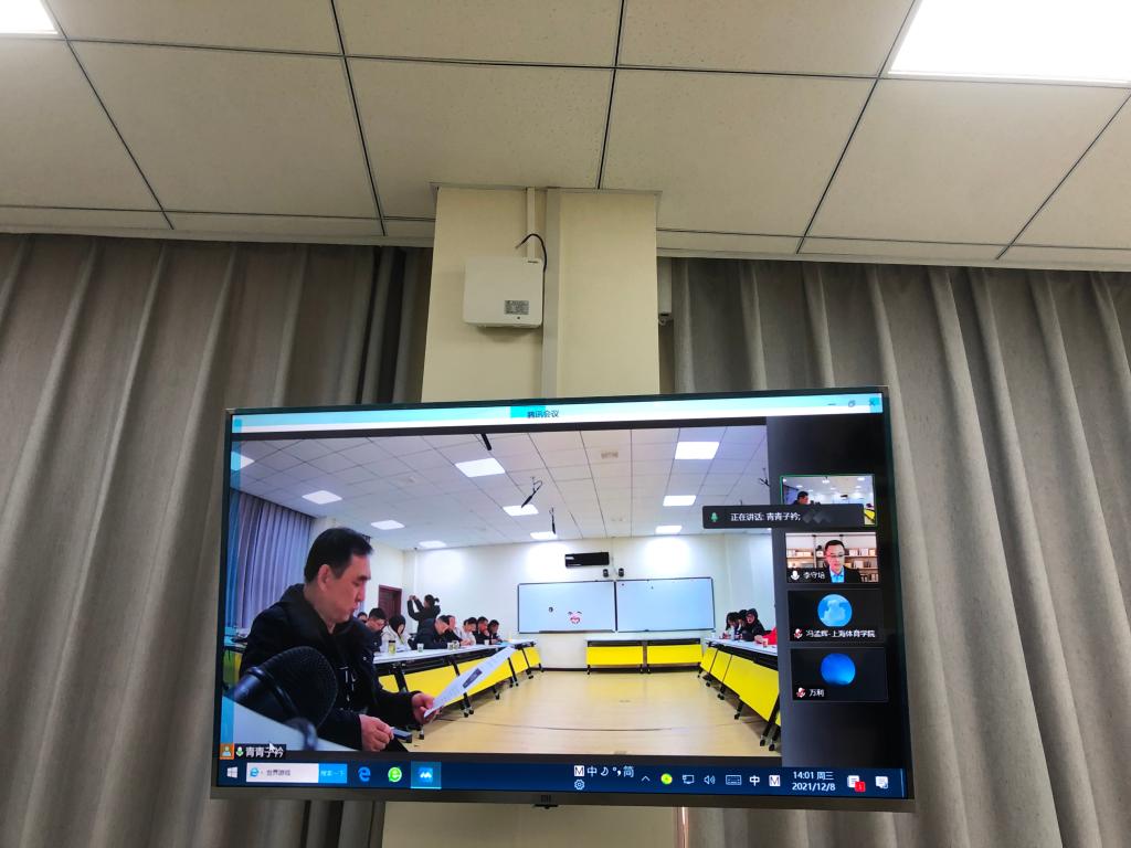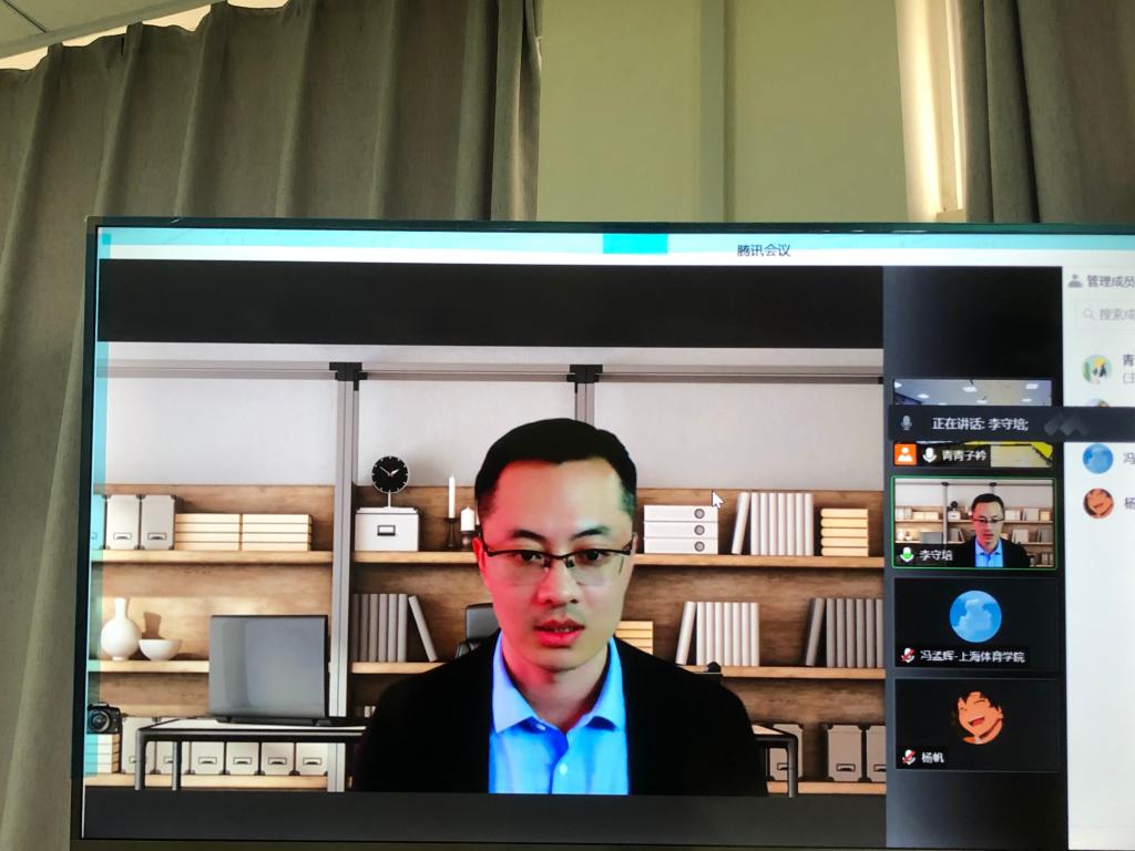 此次座谈会主要有四项议程:会议第一项,与上海体育学院李守培副教授、冯孟辉博士现场联线,为研究生做会议讲座;会议第二项,12名研究生汇报自己的学习状况和所遇到的困惑;会议第三项,师生交流;会议第四项,体育学院党总支书记、院长倪东业做会议总结。