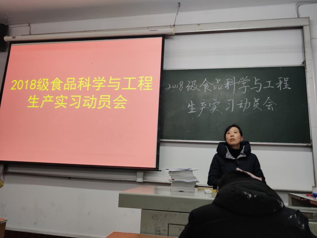 (本网讯 程超/文 朱玉昌/图)12月2日晚,2018级食品科学与工程专业生产实习动员大会在4303教室召开。学院副院长周志、办公室主任陈根洪、食品科学与工程系主任程超、实习带队老师朱玉昌、班主任陈杰及食品科学与工程专业全体教师参加了会议。