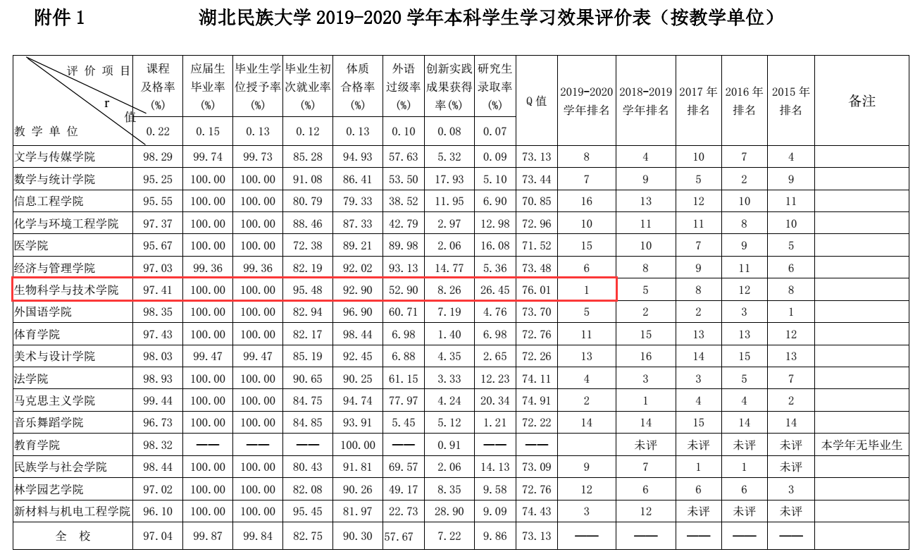 生科院现下设生物工程、食品科学与工程、生物科学和生物制药四个专业,在学院领导的带领和全院师生的共同努力下,我院在yL23411永利官网登录2019—2020学年本科学生学习效果评价中位居全校第一(下图一);按专业排名,我院生物科学、生物工程和食品科学与工程专业包揽yL23411永利官网登录2019—2020学年本科学生学习效果的前三甲,生物制药专业位居全校第十(下图二)。