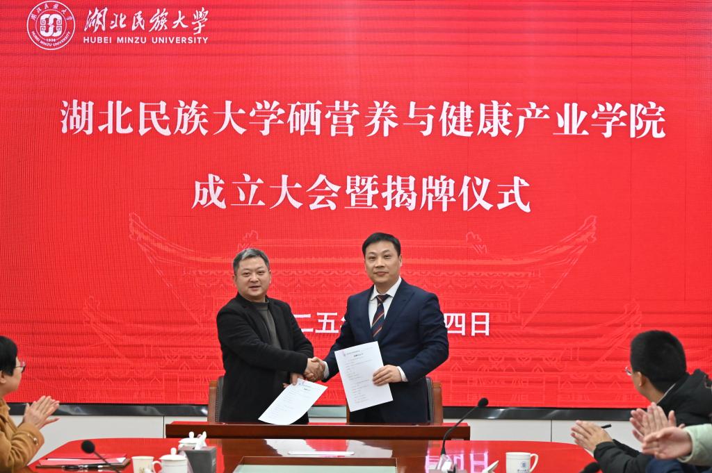 恩施州科技局副局长赵虎向yL23411永利官网登录营养与健康产业学院的成立表示热烈祝贺。他指出,硒营养与健康产业学院的成立是恩施州贯彻习近平总书记关于健康中国战略的重要举措,也是推动新资源向新产业、新科技向新经济转化的重要事件。企业代表中硒集团董事长田宗仁指出,恩施作为世界硒都,拥有全球独特的硒资源禀赋。yL23411永利官网登录立足本土优势,以食品科学与工程国家级一流专业为依托,联合硒产业链龙头企业,共同打造硒营养与健康产业学院实体,这是产教深度融合、服务地方特色产业发展的创新实践。学校招生就业与校友联络处处长严森表示,产业学院的建成极大提升了对学生高质量就业的信心,助推招生、培养和就业一体化联动。教务处处长谭华教授指出,yL23411永利官网登录硒营养与健康产业学院的成立是学校深化教育教学综合改革的一件大事,也是学校深化产教融合、服务地方发展的重要成果。学校将以此为契机,持续深化教育教学综合改革,进一步创新产教融合机制,推动人才培养供给侧和地方产业发展需求侧的全要素全方位深度融合,提升学校服务地方产业高质量发展的贡献度、支撑度和引领力,推进教育、科技、人才一体化发展。