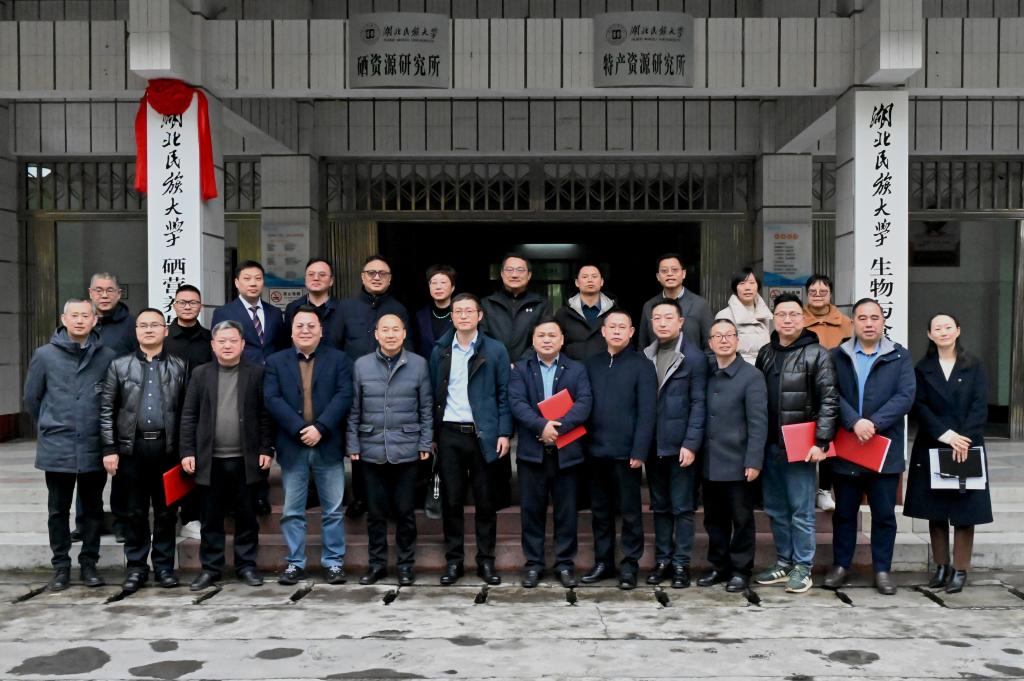 本网讯 3月14日下午,湖北省高校省级现代产业学院——硒营养与健康产业学院成立大会暨揭牌仪式在学校行政楼三楼3号会议室举行。我校党委常委、副校长李军教授率教务处和招生就业与校友联络处负责人,恩施州科技局副局长赵虎、恩施州硒资源保护与开发中心副主任魏凯、恩施州农科院副院长向极钎、恩施州公共检验检测中心总工程师薛华和恩施州中心医院科研管理办公室主任黄楚鹰等5家政府部门及事业单位领导,中硒集团董事长田宗仁、恩施德源健康科技发展有限公司总裁储震、恩施硒谷科技股份有限公司总经理余爱民、恩施硒圣植物科技有限公司副总经理赵新民、湖北领尚优选网络科技有限公司董事长方刚和总经理汪涛、湖北硒盟健康科技有限公司董事长周猛、恩施硒春瑞健康科技有限公司总经理南占东、建始食达好农产品工贸有限公司执行董事祝丹等8家企业代表,生物与食品工程学院领导及教师代表等共同出席仪式。我院党总支书记周志教授主持仪式。
