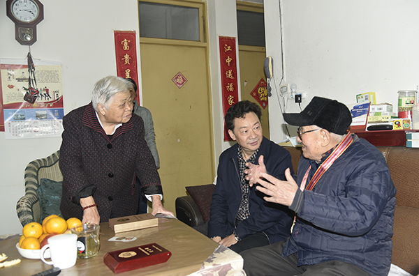 本网讯 今年是中国人民志愿军抗美援朝出国作战70周年,10月27日下午,党委书记吴建清带领保卫处、离退休人员工作处等部门负责人看望慰问我校参加过抗美援朝作战工作的离休干部赵友森,给他送去“中国人民志愿军抗美援朝出国作战70周年”纪念章。