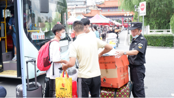 4号迎新活动分为三个时间段:8:00-13:00;13:00-18:00;18:00-22:00;5号为两个时间段:8:00-13:00;13:00-18:00,50名志愿者交替值班。立人八公寓与博学六公寓主要是引导来校新生扫码加入新生群并帮其托运行李至新生寝室。外国语学院服务点主要是为来校新生答疑解惑,志愿者积极的带领新生入院了解并熟悉我院教室、办公室的分布。在公寓的服务点,志愿者们不辞辛苦的帮助来校新生托运行李,主动与新生交谈,增进新老生的感情。