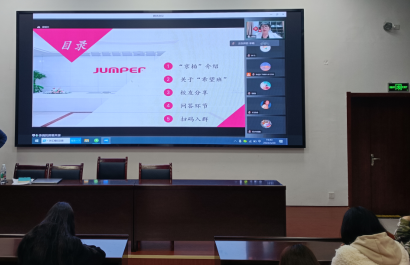 时间:2022-03-21 编辑:学生科 点击:本网讯(通讯员 刘邦 摄影 纪洁 王思月)为进一步加强校企合作,为毕业生高质量就业和用人单位招聘搭建平台,促进毕业生和用人单位双向选择。3月20日晚7点,外国语学院在6402教室举行京柏班开班仪式。此次仪式邀请了京柏医疗公司医疗顾问李娟进行宣讲,19级日语系全体同学参加,学生科科长粟登平担任主持人。