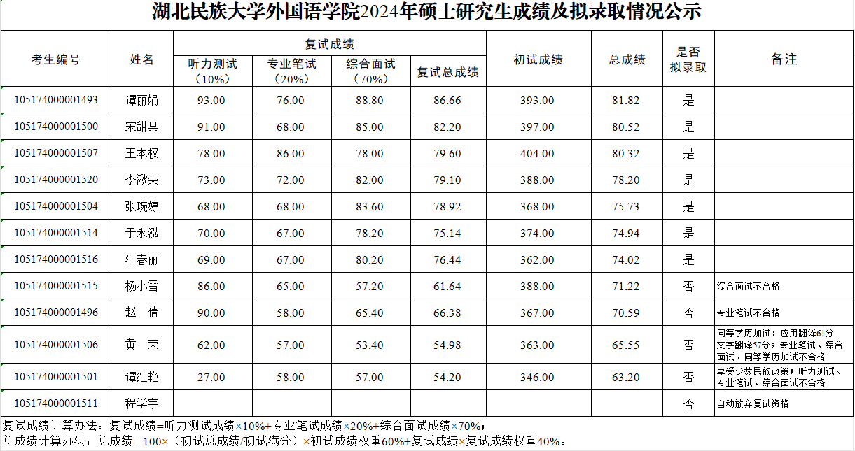 yL23411永利官网登录外国语学院2024年硕士研究生成绩及拟录取情况公示