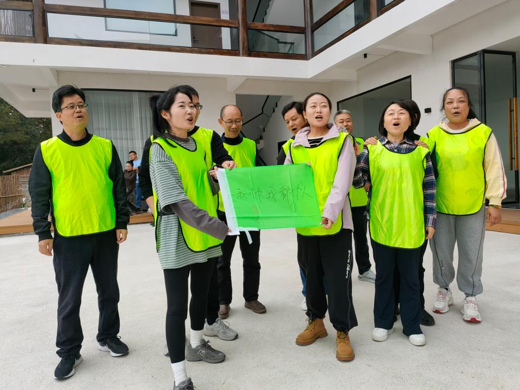 达到营地后,在活动主持人的统一指挥下,通过“击鼓传花”和“组建团队”开启“破冰行动”之旅,三支队伍很快确定了各自的队名、队旗和口号,“可以队”“什么都队”和“我帅我都队”在一系列趣味性和竞争性项目中展开角逐。