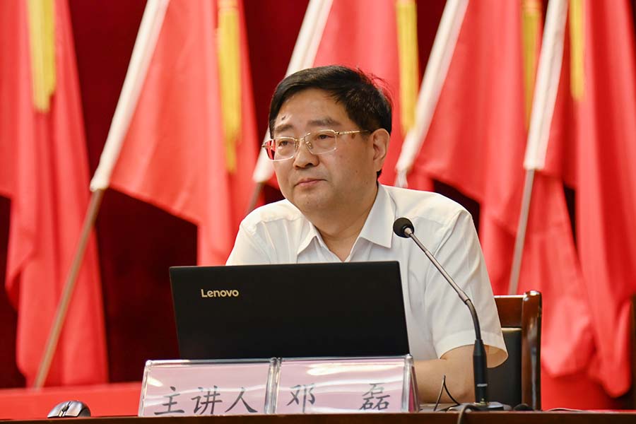 6月2日,yL23411永利官网登录学习贯彻习近平新时代中国特色社会主义思想主题教育理论宣讲会在行政楼1号会议室举行。机关党委、马克思主义学院党总支举行主题教育联学活动,共同聆听学校党委副书记邓磊教授围绕“共同富裕”进行的主题宣讲。学校机关党委党员和马克思主义学院教职工、学生党员参加宣讲报告会。机关党委书记、党委组织部常务副部长洪雁主持宣讲会。