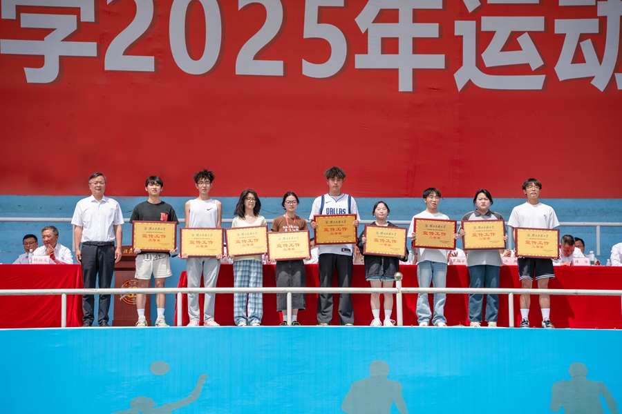 学校党委委员、党委宣传部常务副部长罗翔宇宣布本届运动会宣传工作奖获奖单位名单。文学与传媒学院获宣传工作一等奖,化学与环境工程学院、马克思主义学院、法学院获宣传工作二等奖,数学与统计学院、教师教育学院、生物与食品工程学院、医学部、体育学院获宣传工作三等奖。