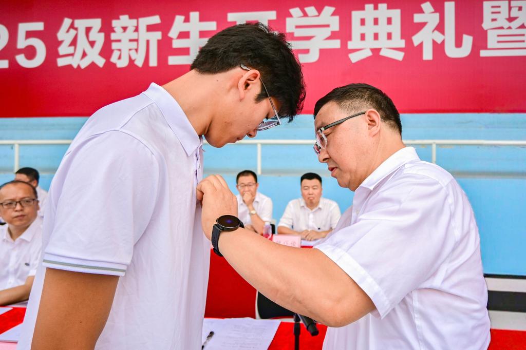 戴清堂为新生代表佩戴yL23411永利官网登录校徽