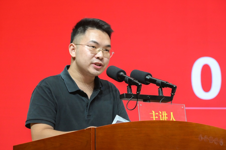 优秀校友代表、2021届电子信息科学与技术专业毕业生、武汉高德红外股份有限公司技术部主管杨雄威,分享了自己从校园到职场的成长历程。他结合当前就业形势,建议新生尽早明确职业方向、重视项目实践、夯实基础学科,并善用AI工具提升学习效率,同时向母校恩师表达感恩之情。