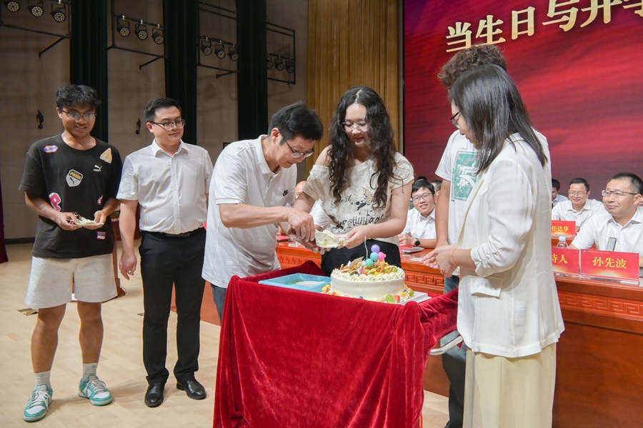 在教师节特殊时刻,现场举行了向教师献花环节,表达对教育工作者的敬意。新生代表、2025级电气工程及其自动化专业杨子正代表全体新生承诺将遵纪守法、锤炼技能、团结协作,以“智能人”的身份追求卓越,不负青春。活动还为与开学典礼同日生日的3位新生举办集体生日会,班主任送上生日蛋糕,全场齐唱生日歌,现场氛围温馨热烈。