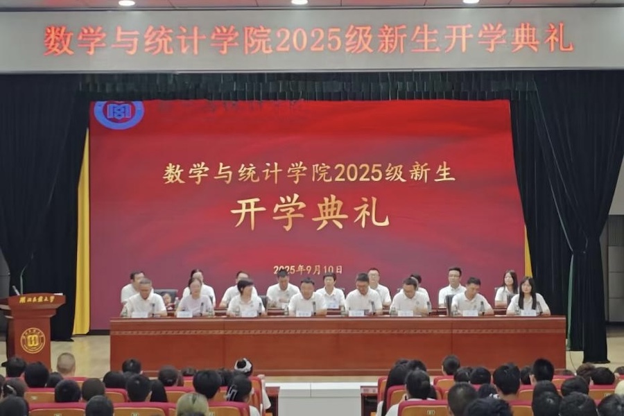 9月10日晚,数学与统计学院2025级新生开学典礼暨本科生新生特色主题团日活动在行政楼一楼会议室举行。优秀校友代表涂晓璇,学院领导,数学系、统计系系主任,各科室负责人,全体思政辅导员,2025级本科生班主任,2025级全体本科生、研究生及学院学生会、团委主要负责人出席典礼。典礼由学院党总支书记魏代俊主持。
