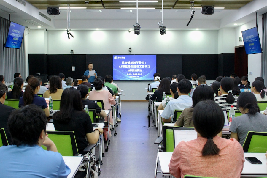 为深入推动数字技术与智能技术在教育教学中的深度融合,加快智慧课堂建设进程,9月11日,学校教务处与教师发展中心在修远楼5A701联合举办了“数智赋能教学转型:AI智慧课程建设工作坊之知识图谱构建”。本次活动是学校智慧课程建设系列工作坊的重要一环,吸引了70余名教师积极参与。参训人员主要包括2025年度学校集中建设智慧课程的负责人、团队成员,以及对相关内容感兴趣的教师代表。