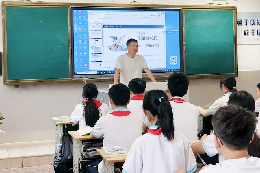 罗建新在化学课堂上授课