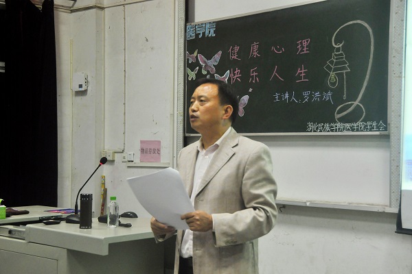 (本网讯 记者 向锦月/文 吕丰旭/摄)10月10日,由湖北民族学院神经精神共患病研究所主办,医学院学生会、研究生会、桃源工作室等共同承办的“健康心理 快乐人生”专题宣传活动及宣传讲座在该院8206教室开展。该院副院长罗洪斌担任主讲人,200余名学生到场聆听。