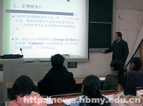 李教授以中西方文学研究力度的下降为切入点,围绕文学研究的“话题缘起”、“国内外的概念理解”、“对象和功能”、“阅读文学的策略”四方面进行详细的讲解。他以时代的根本性变化为切入点,指出网络时代和消费社会的到来及快餐文化的盛行,导致文学遭到冷落、面临被边缘化的严峻挑战。他指出,文学艺术的描写对象是活生生的人,是特定社会关系中的人的命运、人的个性、人的感情、人的灵魂,文学即人学。讲座中,他还就“文学的特点”、“文学的功能”、“文学关涉的对象”、“文学与社会学等其他学科的关系”作了说明。针对文学与哲学的关系,他引用皮埃尔·马舍雷的言论提出文学在先哲学在后,可哲学决定着文学的形式,提倡以哲学的方式来研读文学。
