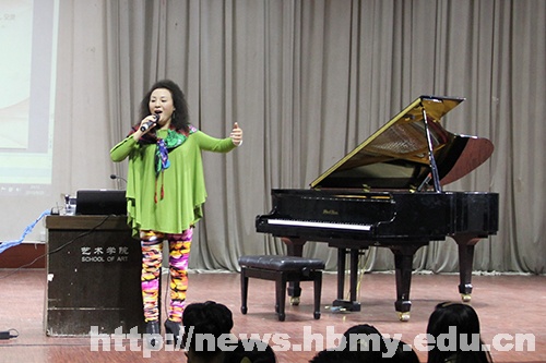 本网讯(见习记者 孙梓瑞 通讯员 郭宏姣 龚秀苗/文员宇斐/图)9月25日晚,美国舞星艺术学院院长兼中国传媒大学客座教授江鸣鸣应邀在艺术学院演播厅作了一场题为“音乐神秘元素 唯美空灵唱法及技巧”的专题讲座。艺术学院部分老师及学生听取了讲座。
