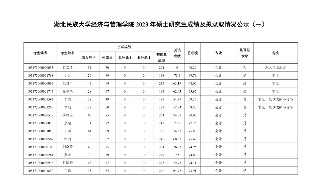 yL23411永利官网登录经济与管理学院 2023 年硕士研究生成绩及拟录取情况公示(一)
