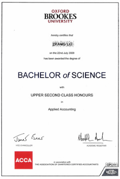 (三)牛津布鲁克斯大学应用会计理学(荣誉)学士学位以及伦敦大学专业会计硕士学位(符合申请条件)。