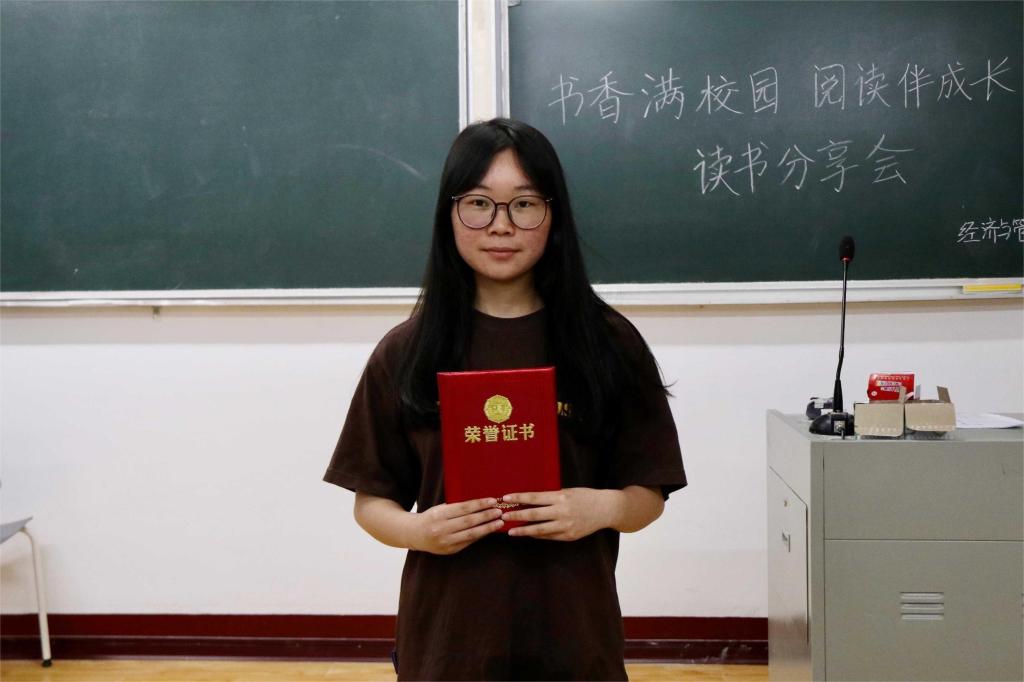 “书香满校园 阅读伴成长”读书分享大赛分为初赛和决赛两个部分,其中,初赛在经济与管理学院“一站式”学生社区举行,经过初赛的激烈角逐,共有十五名同学成功晋级决赛。在决赛中,一号选手周隆宇分享书籍《活着》,他从“家庭的起伏”“社会的变迁”“战争的摧残”“坚强地活着”四个方面进行介绍,并表示《活着》是一本感人至深的小说,思想深刻、震撼人心,值得读者深入思考;四号选手童佳瑞分享书籍《云边有个小卖部》,她希望每个人都能学会与自身和解,珍惜当下,以积极的态度面对人生;八号选手张玉婷分享书籍《牧羊少年的奇幻之旅》,她对该书的主要内容进行详细介绍,并表达“成功不是一蹴而就,追寻梦想的道路上,努力不会被白白浪费”的主题。经过激烈角逐,八号选手张玉婷以85.34分荣获一等奖。