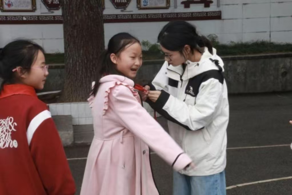 志愿者帮小朋友们系红领巾