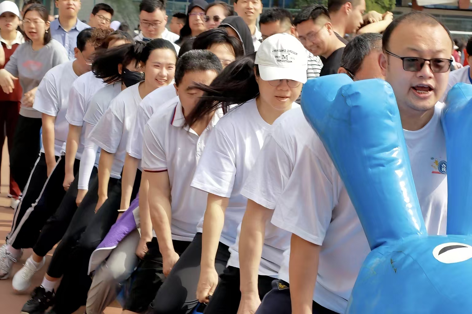 比赛现场气氛热烈,经济与管理学院教职工积极投入各个项目,展现出高度的活力与团队协作精神。在跳绳接龙项目中,教职工身姿矫健,快速穿梭跳跃,动作流畅自然,展现出了良好的节奏感和协调能力,用默契的配合不断刷新着成绩;在陆地龙舟项目中,教职工步伐一致,以沉稳有力的脚步和坚定必胜的决心向着终点奋力迈进;在动感颠球项目中,教职工们围圈而立,双手紧握鼓绳,在不断地尝试与调整中,努力让球保持跳动,彰显出高度的团队协作意识;在毽球接力项目中,教职工们灵活地变换着脚步,时而轻盈跃起,时而迅速转身,他们的脸上洋溢着笑容,享受着运动带来的快乐与挑战。