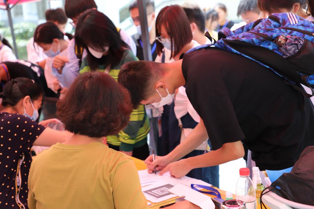 排队办理报到手续