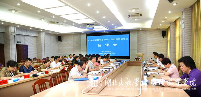 6月14日下午,2018年省级以上中小学幼儿园教师培训项目授课专家备课会在我校3号会议室成功举行,恩施州教科院和恩施市、利川市教研室的领导及教研员,恩施州、市部分中小学校长和幼儿园园长及授课教师代表等23人参加备课会,学校党委常委、副校长祝建波,恩施州教科院副院长俞玲出席会议。大会由继续教育学院院长雷随斌主持。