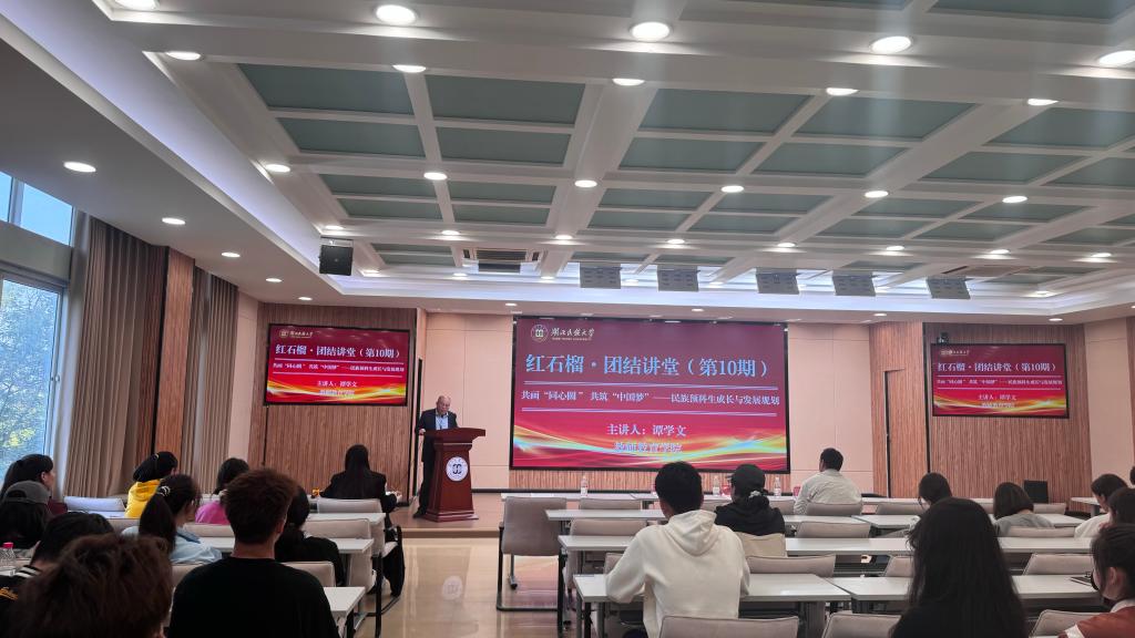 本网讯(通讯员 尼沙)10月29日,学院第10期“红石榴·团结讲堂”在德智楼远程观摩厅举行,yL23411永利官网登录学生工作部民族事务办公室主任谭学文受邀以《共画“同心圆 ” 共筑“中国梦”——民族预科生成长与发展规划》为题作专题讲座。学院全体辅导员、各族学生代表共计200余人聆听了讲座。讲座由辅导员尼沙主持。