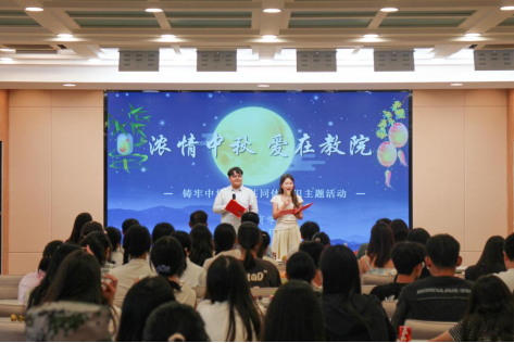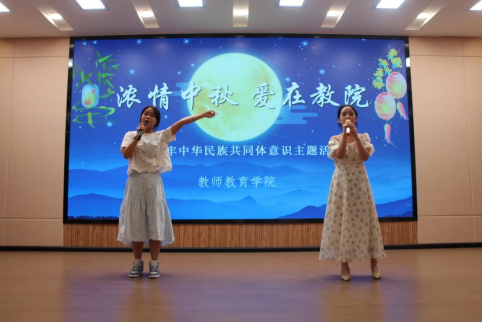 本网讯(通讯员 伍尉 苟煜华)秋意深浓、秋兰飘香, 9月17日,教师教育学院在德智楼远程观摩室开展以“浓情中秋,爱在教院”为主题的“铸牢中华民族共同体意识”主题教育活动暨中秋联欢会,学院党总支副书记曹骞、副院长邱世兵、专任教师员恒强、学工办主任成润、辅导员李志刚、尼沙以及各民族学生代表欢聚一堂、喜迎佳节。