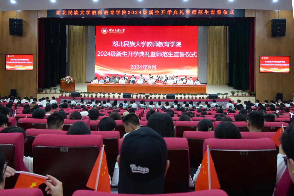 在全体合唱《歌唱祖国》的歌声中2024级新生开学典礼暨师范生宣誓仪式圆满结束。