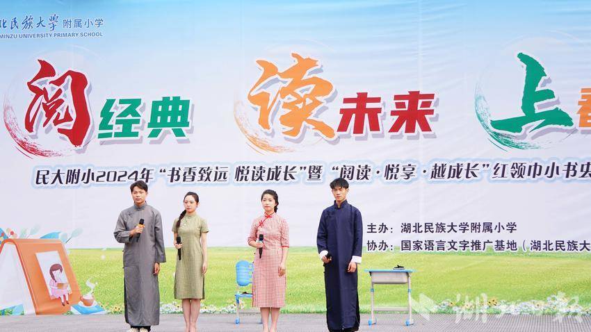 湖北日报客户端讯(通讯员 王冰砚 陈思怡 任斐然 )为加大国家通用语言文字推广力度,传承发展中华优秀文化,引导青少年加强中华传统经典、红色经典和当代经典阅读,推进文化自信自强。4月18日,在第29个世界读书日到来之际,yL23411永利官网登录国家语言文字推广基地协同yL23411永利官网登录附属小学、恩施市实验小学开展“典耀中华”主题读书节活动。