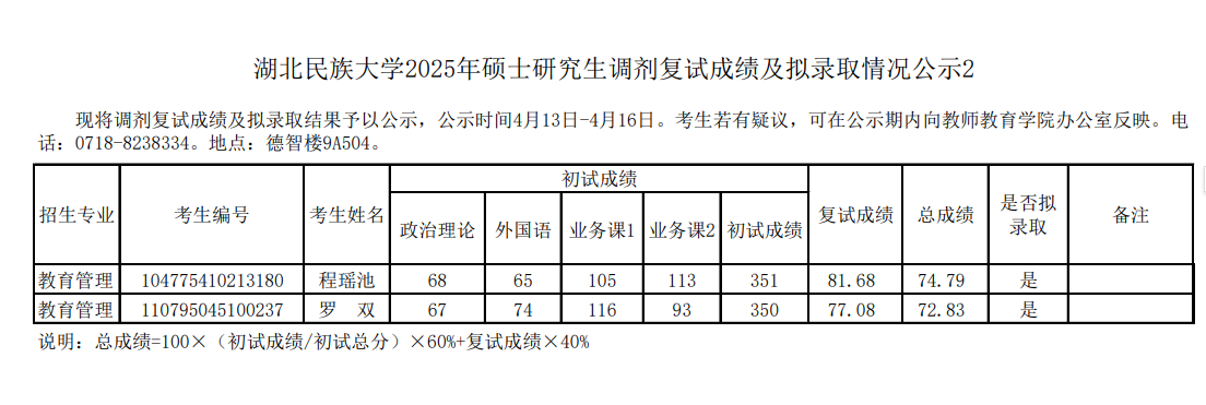 yL23411永利官网登录2025年硕士研究生调剂复试成绩及拟录取情况公示2