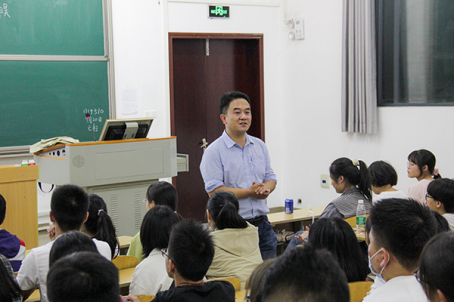 讲座伊始,赖申昊以“你是本专业第一志愿吗,你对自己专业有了解吗”的问题引入讲座主题,他指出专业的选择往往不存在最合理最科学的情况,误打误撞地进入某个专业学习或许是冥冥中最好的安排。随后,赖书记从“如何认识我们的大学和专业”、“什么是大学生生涯规划”以及“如何做大学规划”三个方面展开。赖申昊着重阐述大学的意义并给出读大学的10条意义,其中提到,一所大学的价值并不只是教给学生书本知识,而是它创造出的环境与氛围,在于让你明白世界上有很多优秀的人,你开始有靠近的动力。他还向学生们展示了暑期十年校友座谈时留下的大学感应启发学生对大学的思考。对于什么是职业生涯规划,赖申昊表示这是一个有基础、有目标、有计划的过程,如何寻找适合自身发展需要的职业,实现个体与职业的匹配,体现个体价值的最大化是我们随时应该思考的问题。就如何做大学规划,赖申昊介绍了“客观认识自我,准确定位”、“评估职业计划,确定目标”、“择优选择职业目标和路径”、“制定行动策略,立即学习”及“与时俱进,及时修正与反馈”五个步骤,并列举我院届优秀毕业生,希望新生不要荒废时光。最后,赖申昊借“大学生综合素质测评相关量表”引出学院正在推进的“大学生学业素养养成”及“大学生综合素质提升”两个计划和十个基本素养。