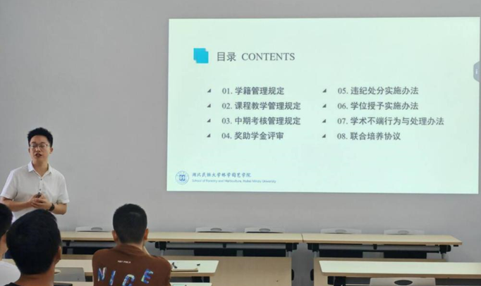 随后,林学学科各研究方向的老师给同学们分别介绍了森林经理学、野生动植物保护与利用、园林植物与观赏园艺、水土保持与荒漠化防治等研究方向的具体情况,引领同学们了解学科设置、学科特色及培养模式,激发他们对专业知识的兴趣和学习的热情。活动中,导师代表吴林老师和新生代表韩洁分别发言,吴老师以幽默的语言分享了他个人的经历和感悟,指引同学们如何度过三年的研究生生活,以最终成长为一名优秀的研究生;韩洁同学代表同学们对学院领导和老师们的辛苦付出表达了感谢,也承诺未来将树立远大目标,勤奋努力,不负韶华。