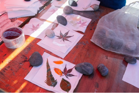 “植物拓印”环节,参与者可从工作人员采集的不同植物样本中挑选出心仪植物,覆于拓印布上,通过石块敲击布面,将新鲜植物样本的汁水印在拓印布上布面上的拓印浮现夏天的花影。活动趣味盎然,精美的作品吸引人群驻足观望