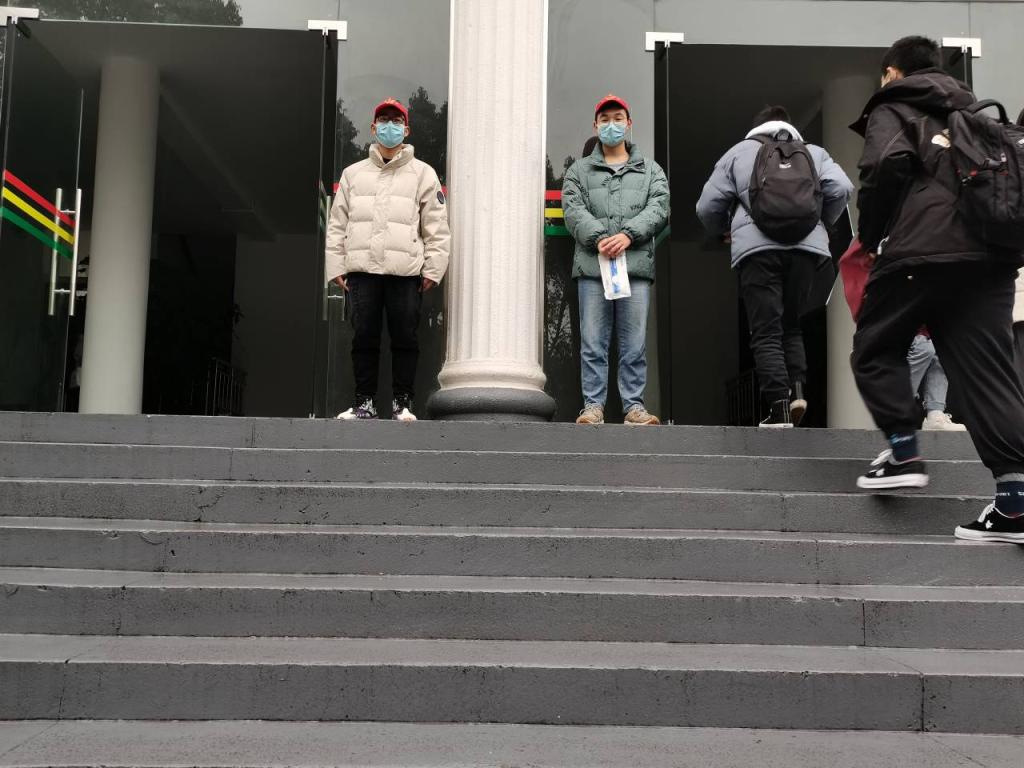 本网讯(记者 张粤 见习记者 余欣华/文 孙思/摄)2月27日,我院师生陆续返校,在当前的严峻疫情下,我院积极采取疫情防控措施,各班晚点名依次向同学们发放口罩,各班班主任向学生强调当前的疫情形势,并叮嘱学生在今后14天进出必须佩戴口罩。