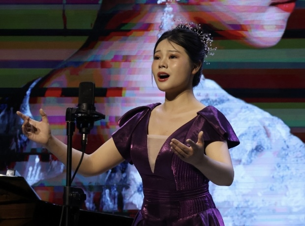 李晨馨以中外艺术歌曲为脉络。一首普契尼的经典唱段《漫步街上》拉开音乐会的序幕。第二首给大家带来了广受欢迎的新疆维吾尔族民歌《一杯美酒》。第三首《我哥回》融合了湖北秭归地区的民间传说与现代音乐元素,以凄美婉转的旋律和深刻的文化内涵广受赞。紧接着,演唱了两首外国作品分别是意大利咏叹调《鞭打我吧》和俄语歌曲《夜莺》。最后一首中国作品《与你相见若如初》结束整场音乐会。