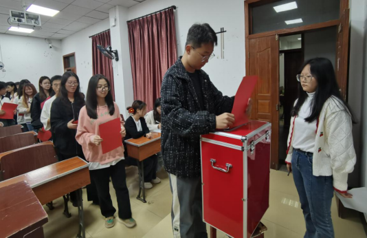 杨婷介绍6名团员代表候选人基本情况。团总支副书记钱松洋宣读《共青团yL23411永利官网登录第一次代表大会代表选举办法(草案)》,并获得在场代表全票通过。大会推选并全票通过陈明玉为监票人,田瑜、谭田娜为计票人。46名团代表在监票人员的监督下进行投票并现场公开清点票数。大会选举产生了吴垚等4位共青团yL23411永利官网登录第一次团的代表会议马克思主义学院代表。