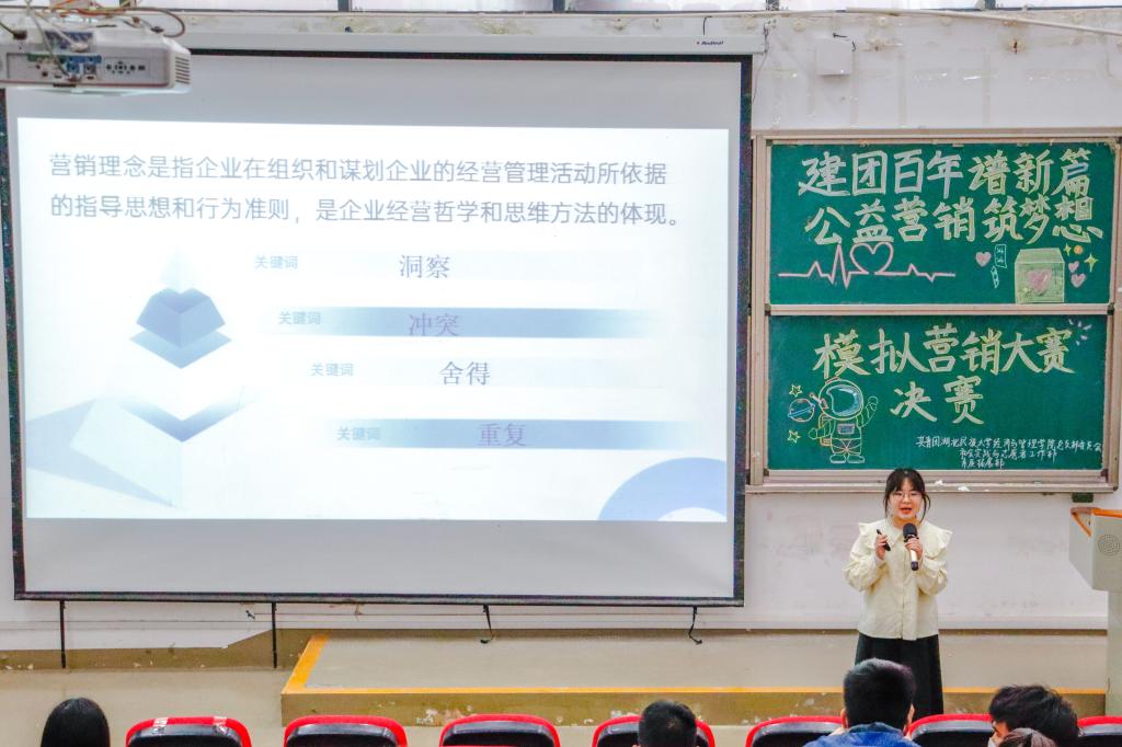 本网讯(见习记者 韩茜茜/文 赵光荣/文 见习记者 陈应格/图)为提高大学生对公益的关注,弘扬志愿服务精神。4月15日,经济与管理学院在修远楼5B404举行以“建团百年谱新篇 公益营销筑梦想”为主题的第二届模拟营销大赛决赛。经济与管理学院辅导员向绍阳、张典、解丽娟,经济系老师冉炜应邀出席并担当此次比赛评委。