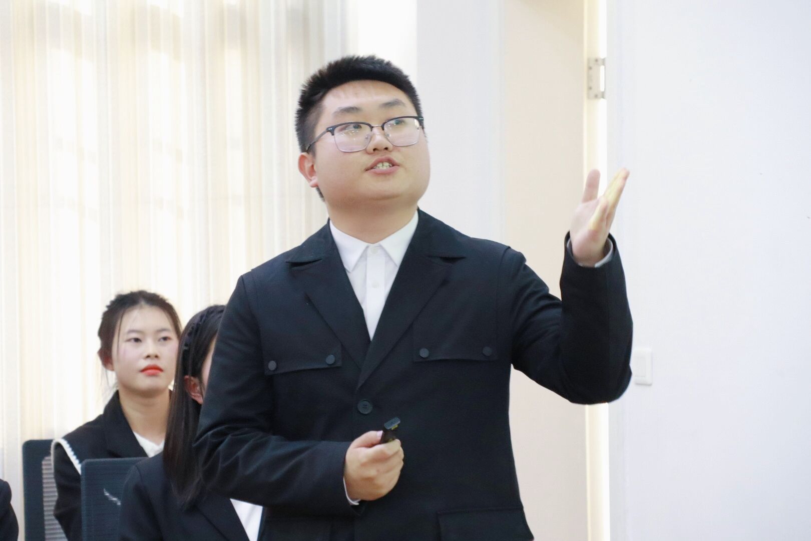 在展演中,来自于法学院的老年群体防骗知识宣传队主讲人华雨萱结合习总书记提出的打击治理违法犯罪的精神指示,从项目简介、项目优势和具体实施三个方面展开介绍,以清晰的逻辑获得评委的一致好评。