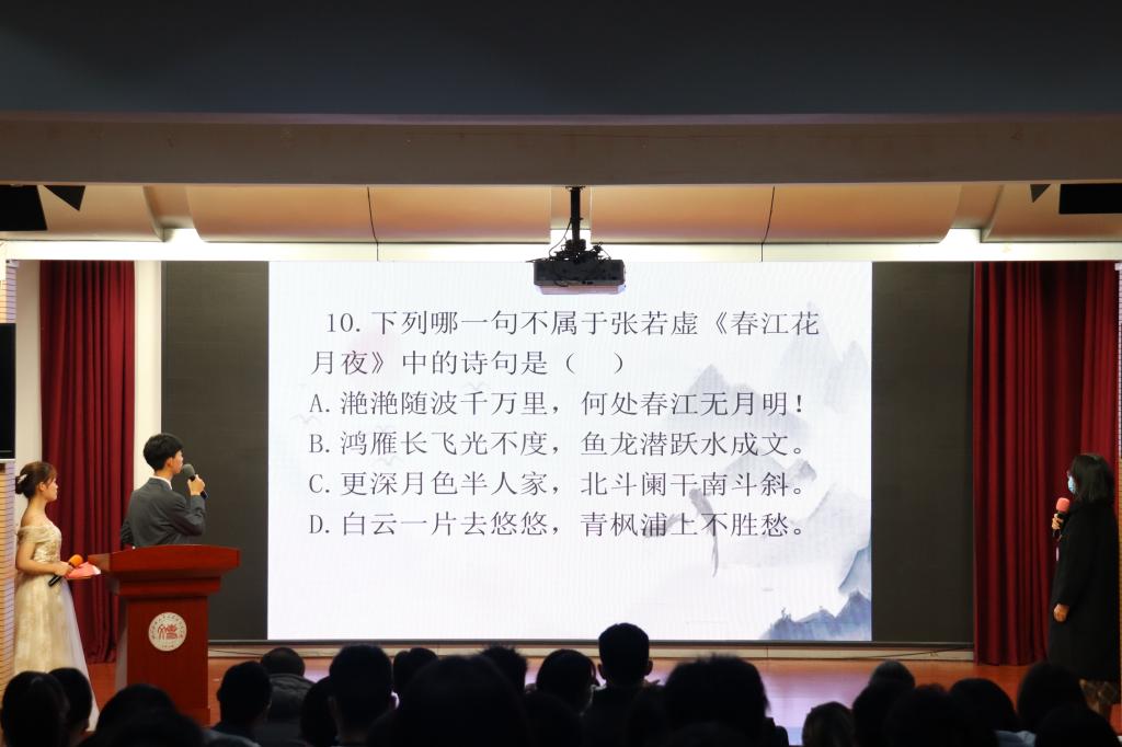 本网讯(记者 田思雨/文 黄钰姿/文 见习记者 李樊灵/文 见习记者 牟婷婷/图 韦丽巧/图)11月20日,由我校教务处、创新创业教育学院主办,文学与传媒学院承办的第五届古典诗词大赛决赛于文传演播厅举行。文学与传媒学院老师陈梦熊、王三毛、阳卓军、刘劲松、徐定辉应邀出席并担任比赛评委。
