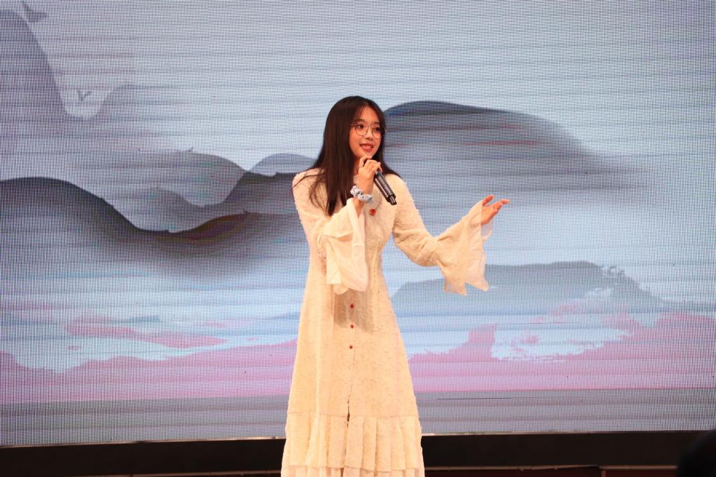 吴珊作点评,她肯定了各位主讲人的精彩表现,围绕抗击疫情和脱贫攻坚等主题,讲出了精彩的故事,展示了青年学子的担当。同时,她希望选手们以后要在背景选材更丰富,配乐更精准,在舞台上的台风更自如。在学“习”一点通环节用更丰富的形式更好地展现。