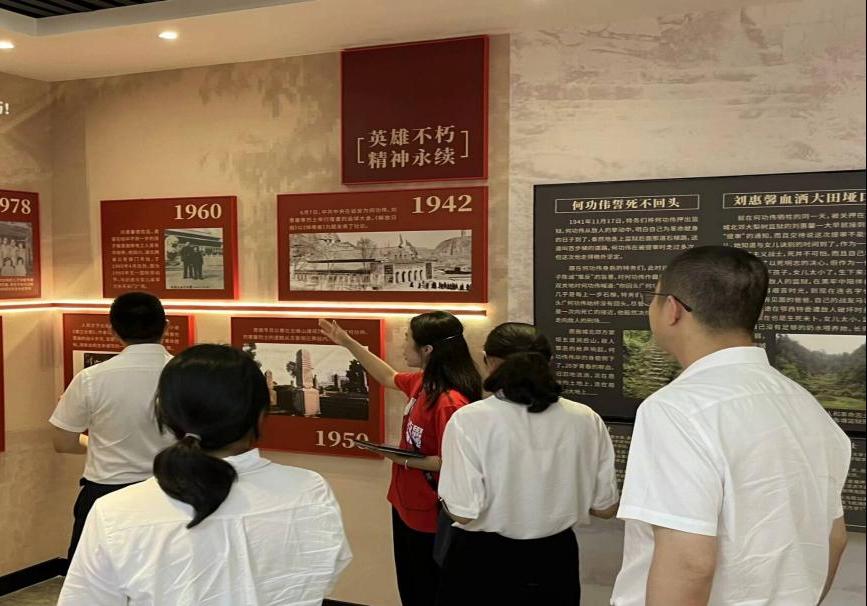 团队成员向参观团队讲解英雄事迹