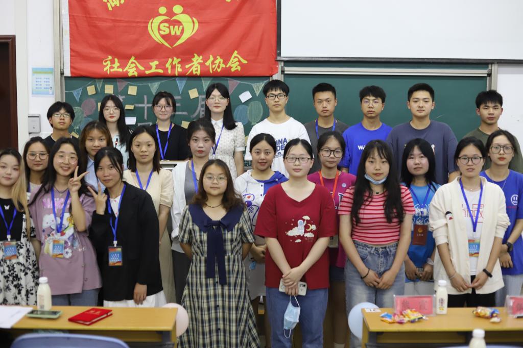 本网讯(记者 罗春洋/文 卢子畅/图) 6月9日下午,我院社会工作者协会在修远楼5A505教室成功举办了第十三届换届大会。我院社团指导老师张雯、团总支书记熊霞、团总支副书记、学生会主席及部分兄弟社团成员受邀参与本次大会,社团全体新老干部参与本次大会。