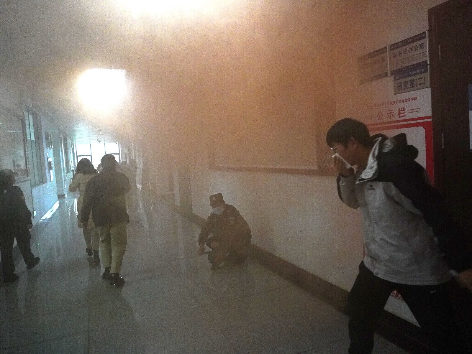 下午14时30分,随着一阵尖锐又急促的警报声响起,我院党总支书记曹召胜迅速下达修远楼12楼发生火灾、请师生立即撤离的命令。现场工作人员各司其职,迅速到达指定岗位,组织师生进行疏散,在浓密的烟雾中全体师生按照应急逃生预案,用毛巾或手捂口鼻,沿着指定安全通道,弯腰靠墙边快速撤离到安全开阔地带地带,做到安全、安静、有序。随后全体师生在一楼集合,迅速向总指挥报告集合人数。