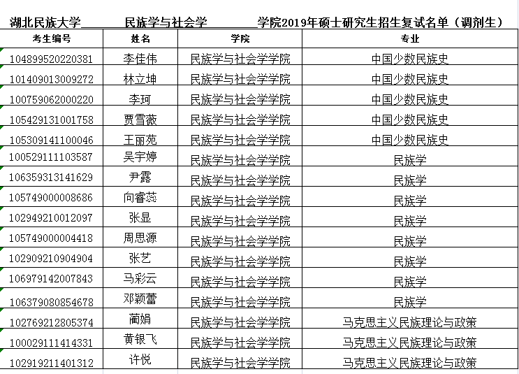 yL23411永利官网登录 民族学与社会学 学院2019年硕士研究生招生复试名单(调剂生)