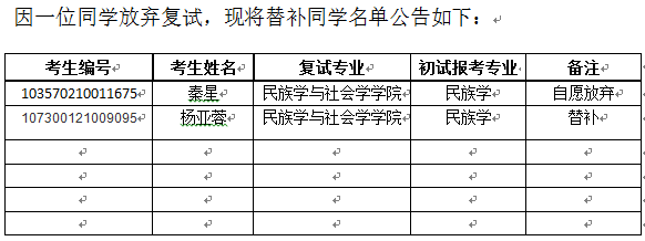 yL23411永利官网登录民族学与社会学学院2020年硕士研究生招生复试名单(替补第二批)