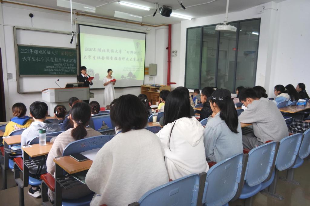 本次比赛共有11个项目进行角逐,比赛通过PPT展示及现场答辩形式对参赛项目的社会调查报告进行评比。各个项目调查报告基本从调查背景、调查方法、调查结果等几方面进行介绍。其中,4号项目《疫后恩施旅游业荆棘与重生》中调查恩施州内相关景点在疫情后经济收入情况,以充足的数据支撑并多角度地分析其旅游经济下降的原因,其调查报告表明旅游业曙光在前,回暖希望大并对恩施旅游业提出相关建议。11号项目《恩施州老年群体被骗现状调查研究》中,项目负责人就团队取得的成效进行具体分析,他们将老年群体从一般大众群体中分离出来进行针对性研究,得出老年群体受骗是多因素派生的结果并根据社会现状提出专业性及科学性及可行性建议。最终,4号项目和11号项目荣获一等奖。